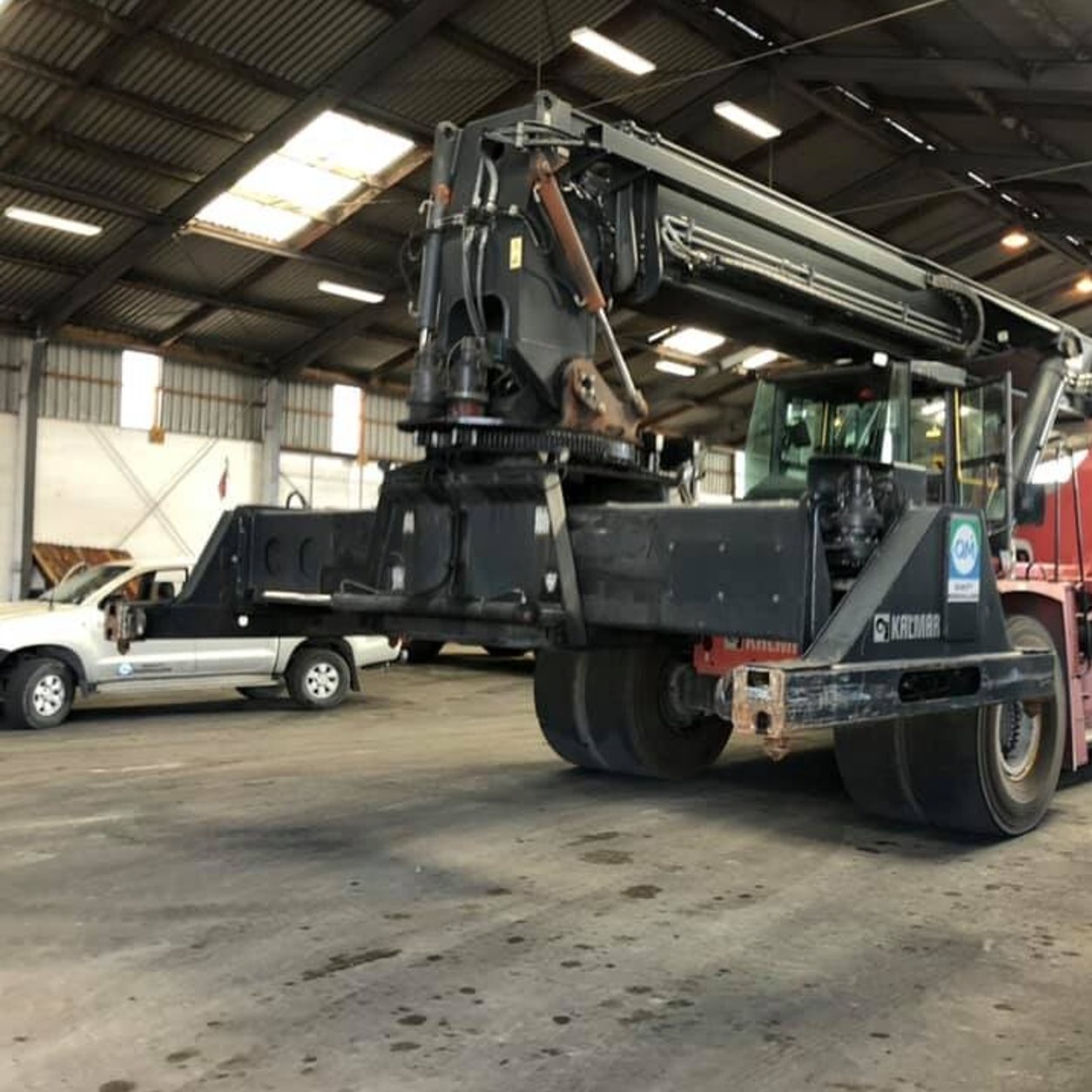A single-view, 2-channel screen with a wide-angle camera installed on a container lifter, providing clear visibility and improved operational safety.